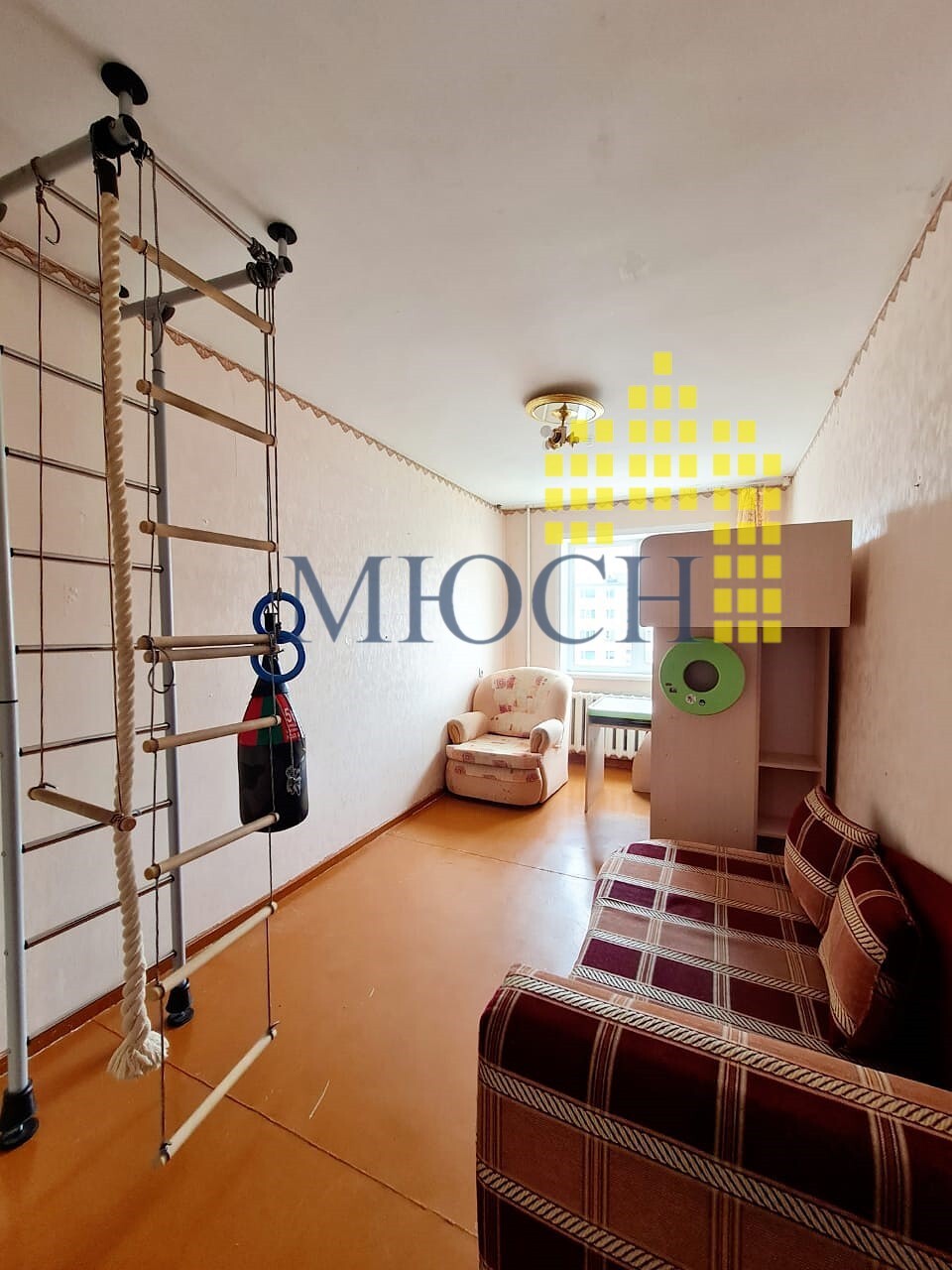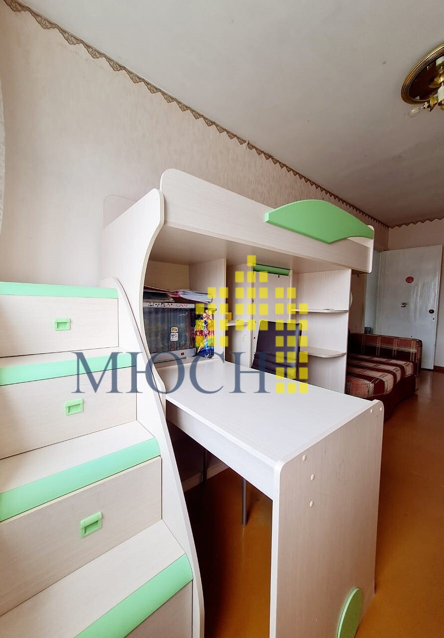 При продаже остаётся: кухонные шкафы, обеденная зона, плита, стенка, кресло, детская кровать – чердак, шкаф- купе, спортивный уголок, телевизор.