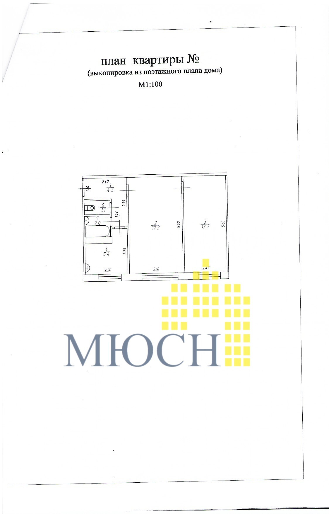 Общая площадь: 43,8 м2