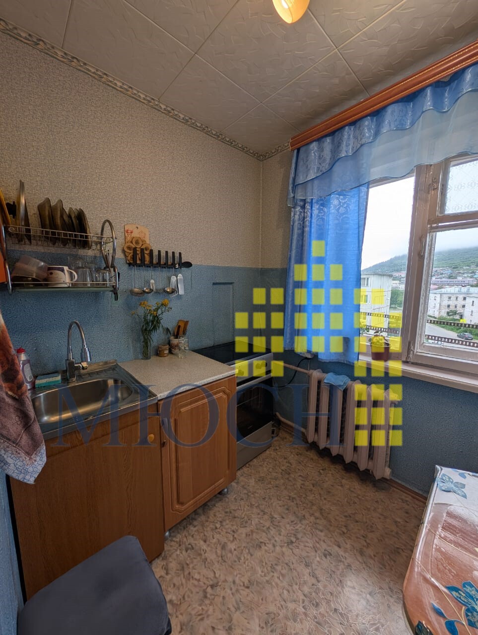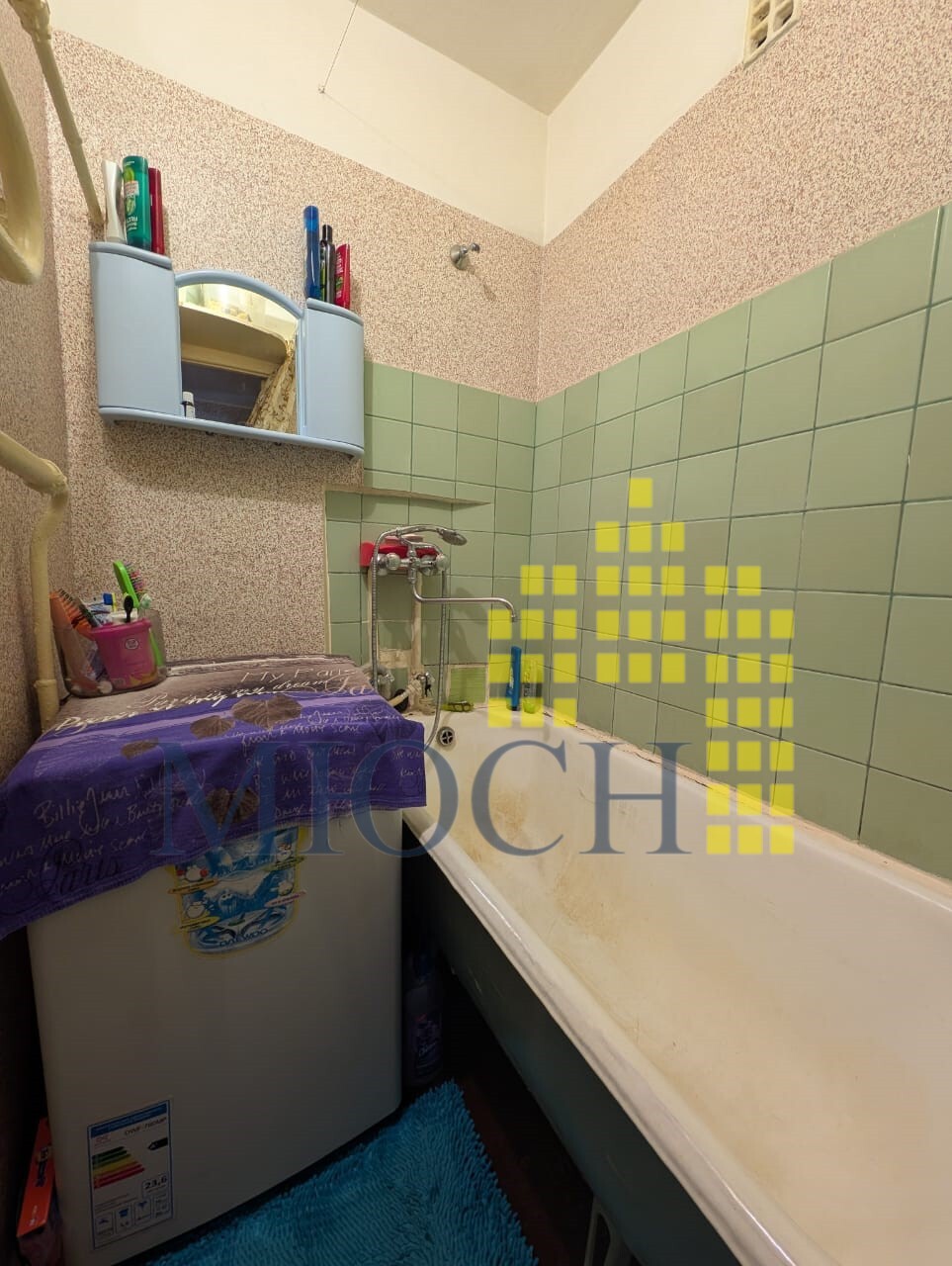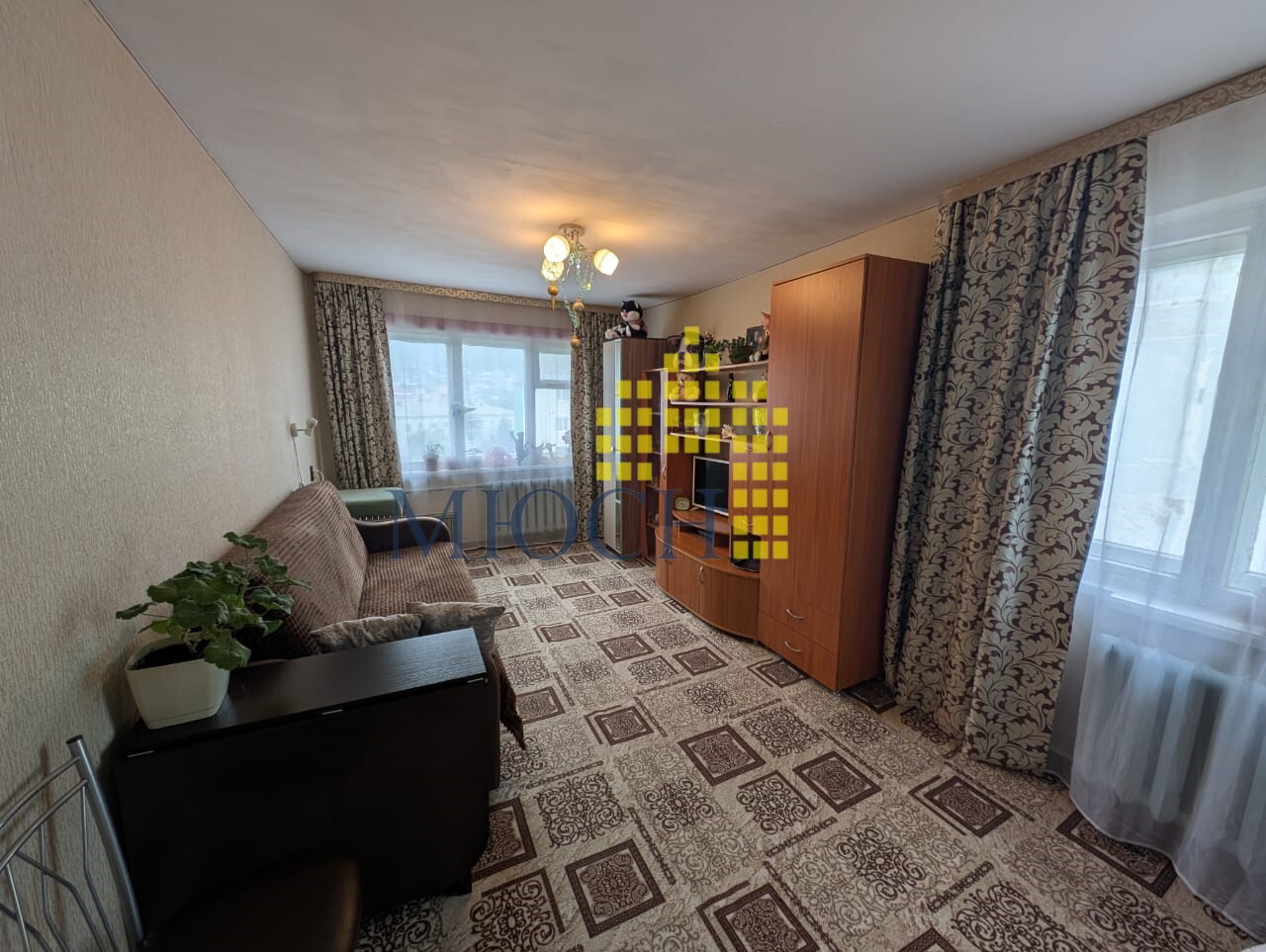 Квартира теплая, светлая, чистая, жилая, сухая. Окна выходят на солнечную сторону. Радиаторы чугунные. Потолки - стиропор. На стенах обои. Полы застелены линолеумом и ковровым покрытием, в ванной кафель. В маленькой комнате выравнены стены. Сантехника частично заменена.