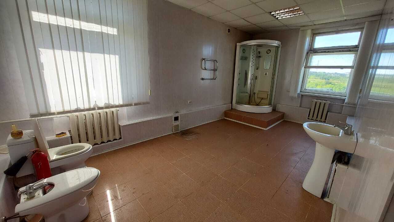 В здании: 11 кабинетов разной площади, душ, кухня-столовая, 2 гаража по 43 м2.